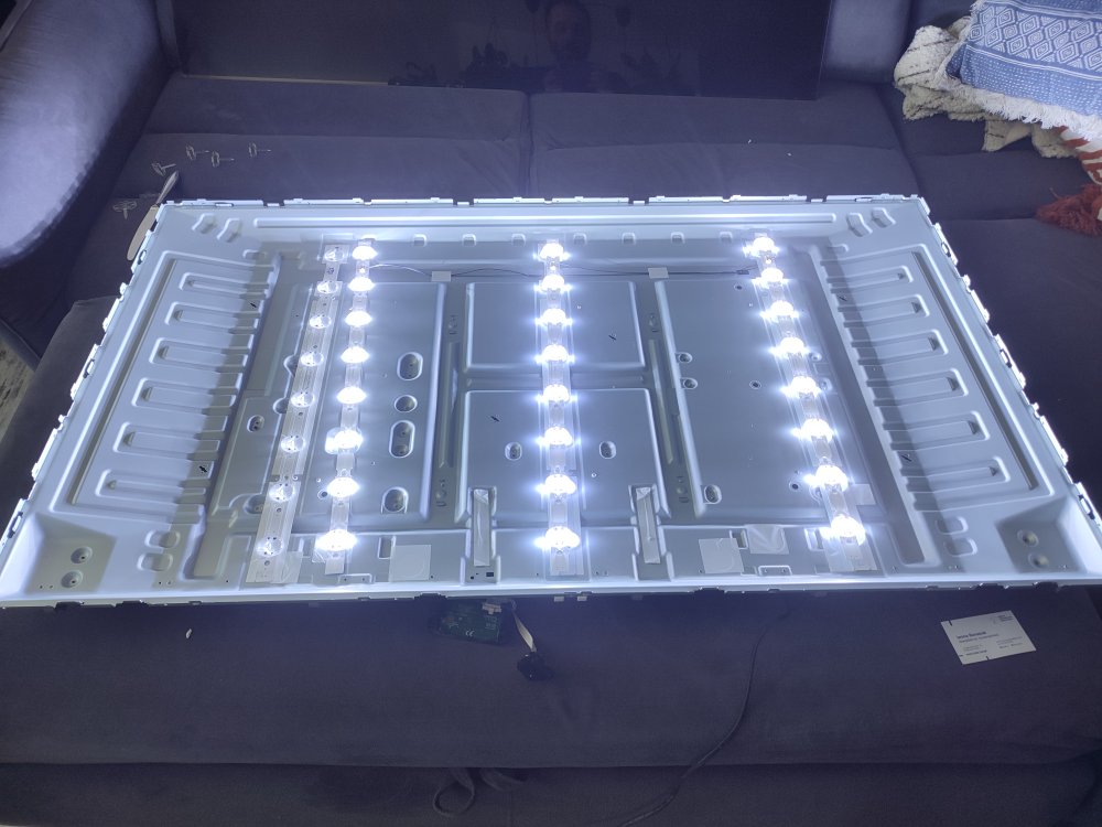 Telewizor uruchamiaĹ siÄ normalnie, sĹychaÄ byĹo dĹşwiÄk z kanaĹów, a podĹwietlajÄ c matrycÄ latarkÄ z bliskiej odlegĹoĹci, moĹźna byĹo dostrzec zarys menu. Diagnoza byĹa natychmiastowa – uszkodzenie sekcji podĹwietlenia LED.