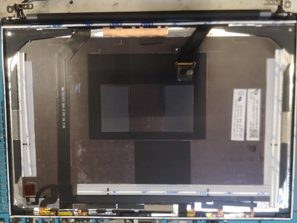 OdĹÄ czenie taĹmy sygnaĹowej: Delikatnie poĹóĹź matrycÄ na klawiaturze, ekranem do doĹu. Z tyĹu matrycy, na jej dolnej krawÄdzi, znajduje siÄ szerokie zĹÄ cze taĹmy wideo (eDP). Zabezpieczone jest ono zazwyczaj maĹÄ , metalowÄ zapadkÄ i/lub taĹmÄ klejÄ cÄ . PodnieĹ zapadkÄ i delikatnie wysuĹ taĹmÄ ze zĹÄ cza.